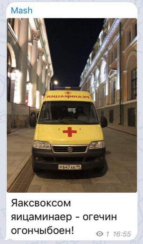 Ребята из Mash настолько тупы, что не знают о том, что надписи на машины реанимации наносят в зеркальном отображении, чтобы водители реагировали, видя их через зеркало заднего вида.