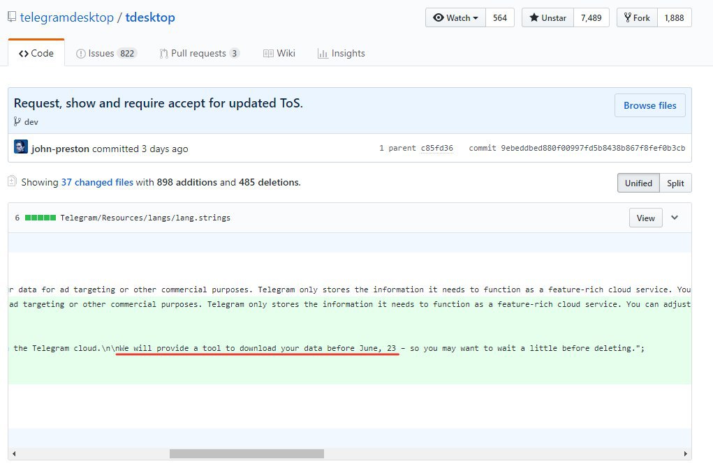 Судя по коду Telegram #Desktop, инструмент для получения всех своих данных, сохранённых в Telegram, появится к 23 июня.