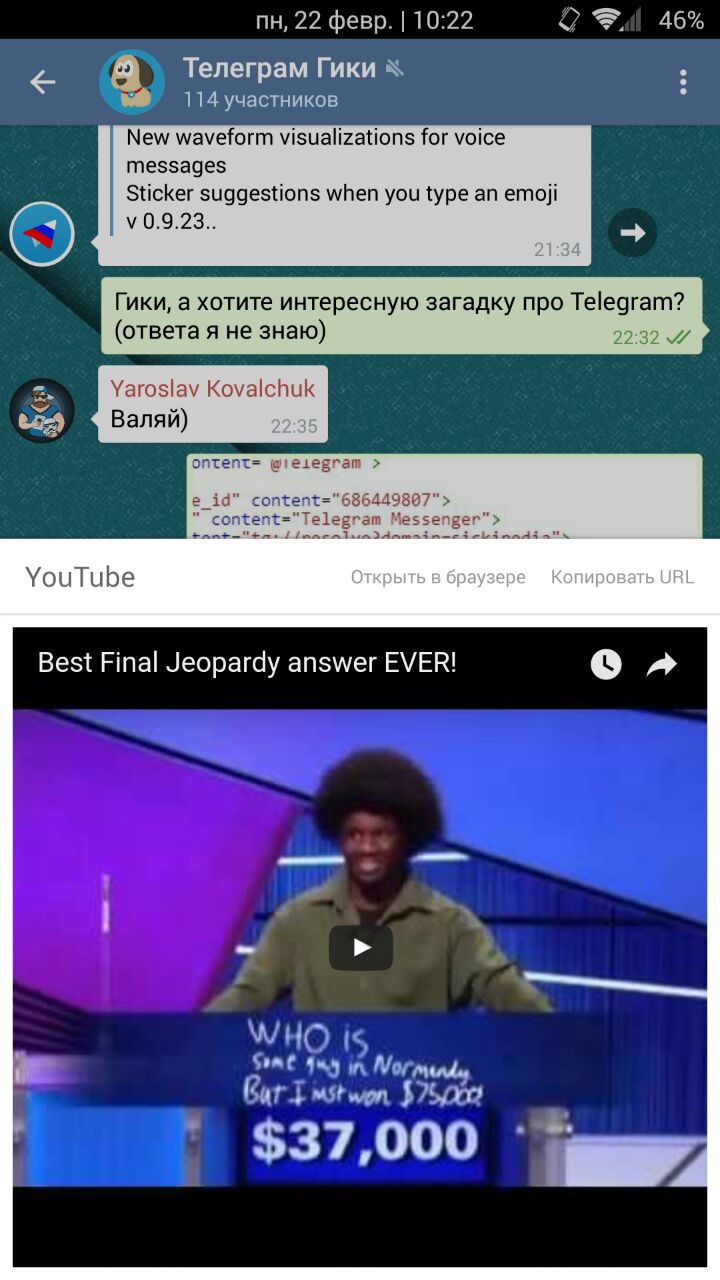 Гики, а хотите интересную загадку про Telegram? (ответа я не знаю)