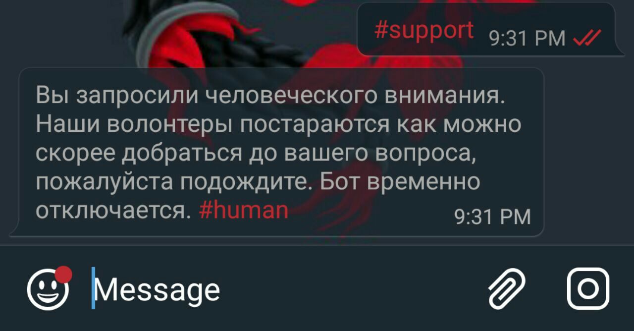 Кстати, после отправки обращения, рекомендую отправить следующим сообщением тэг: «#support».