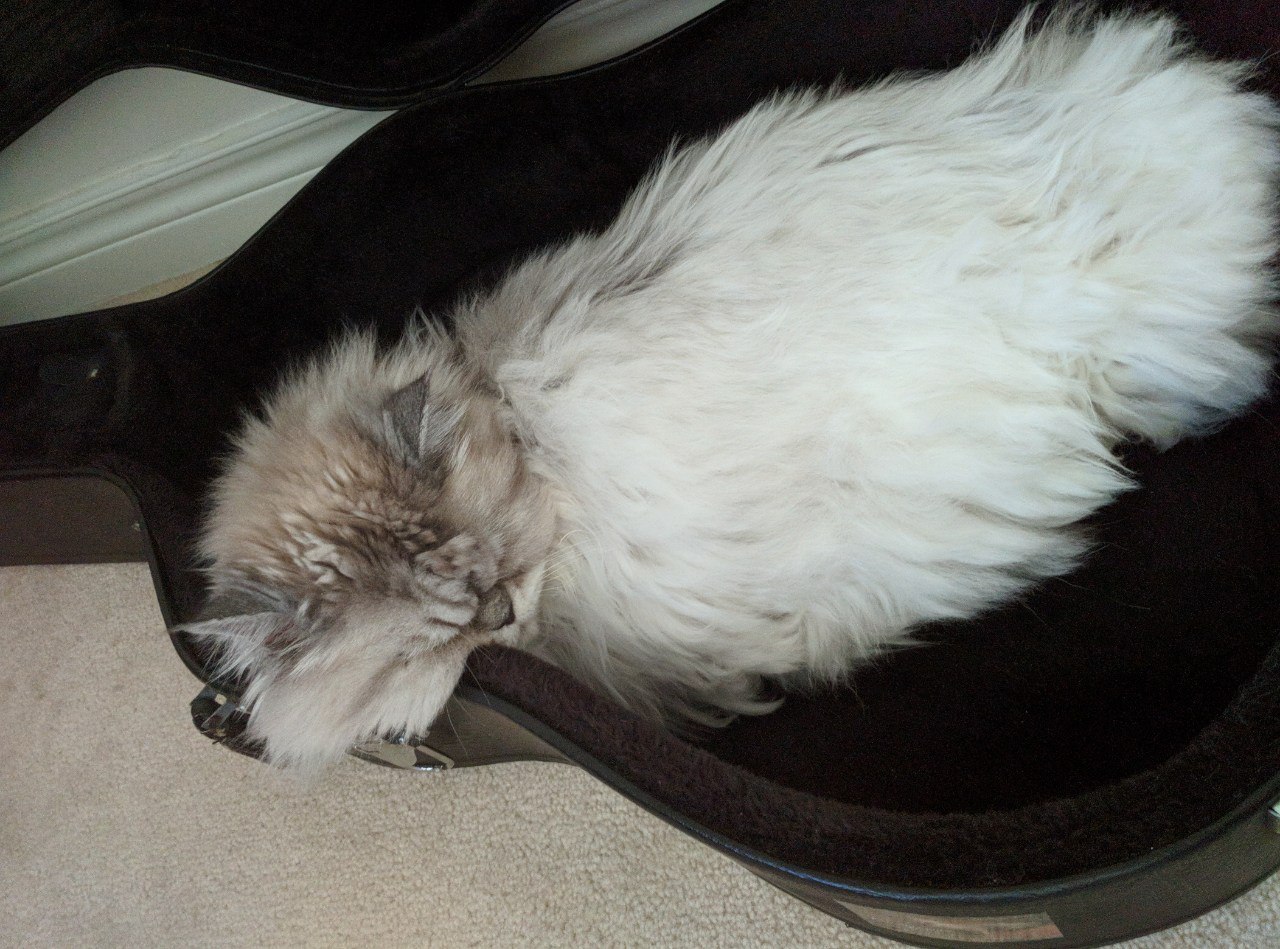 а у меня котик в чехле от гитары спит