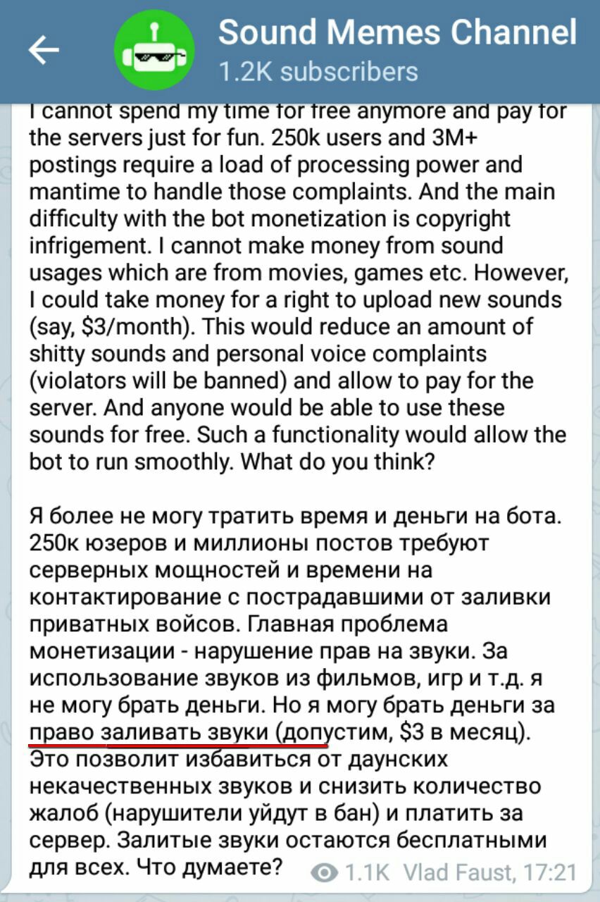 Ну сейчас он пытается выкрутиться, сделать монетизацию путём взятия оплаты с тех, кто загружает звуки, защищённые авторским правом, но чую всё всё равно пахнет закрытием... И отсутствием исходников для небельмезов вроде нас >_>