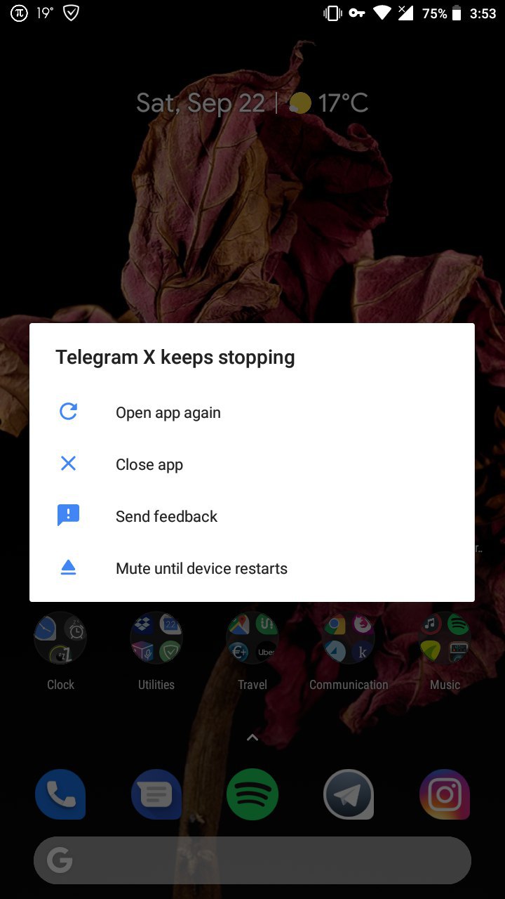 Обновил Telegram X на андроид. Программа крашится.