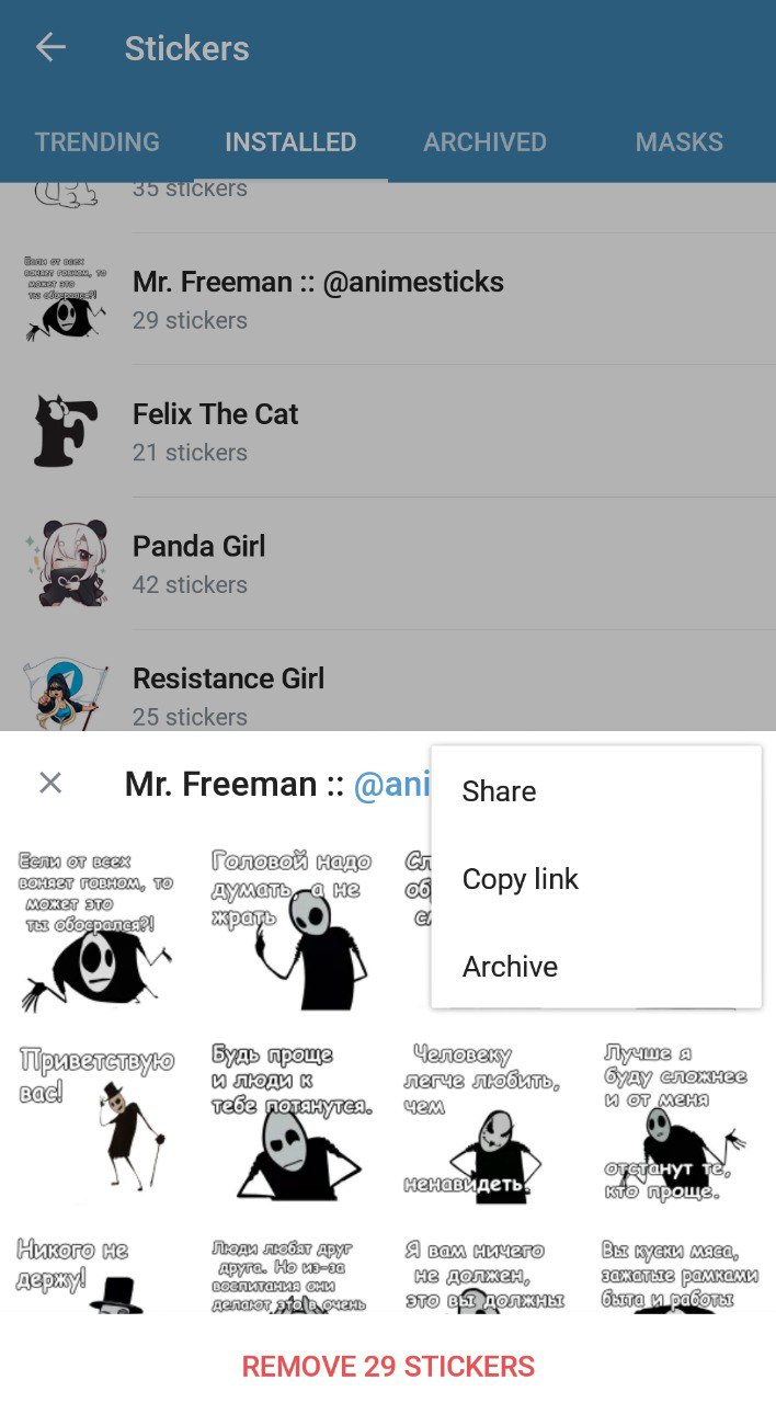 Контакты синхронизируются, потому что заносятся в телефонную книгу на самом телефоне, а гифки и стикеры никуда не заносятся
