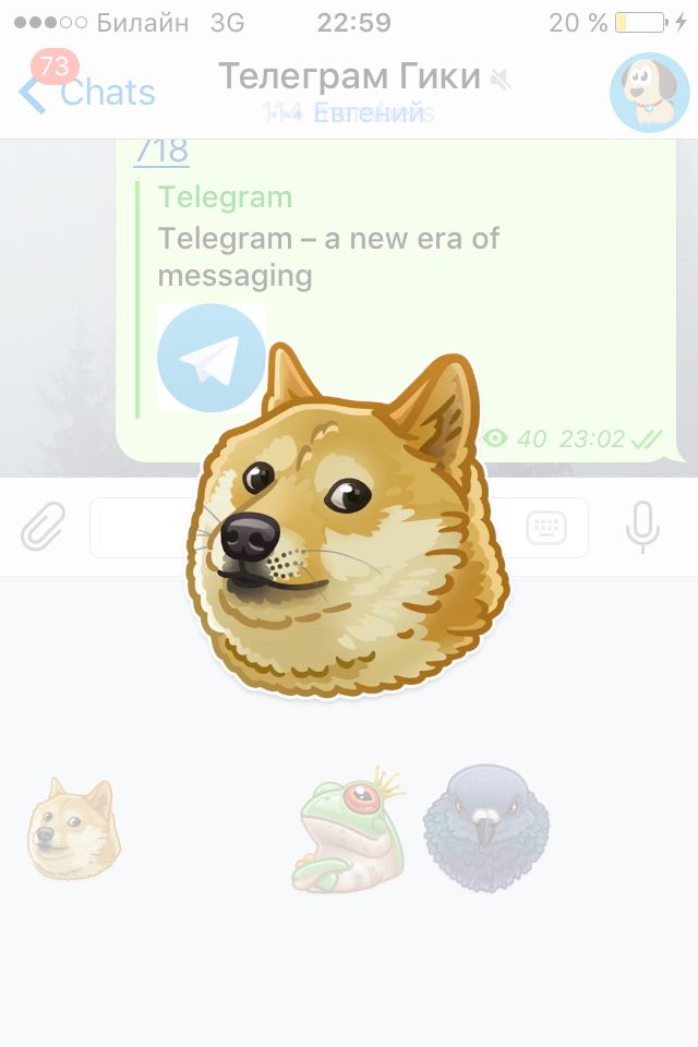6. Предпросмотр стикеров: теперь можно получше разглядеть стикеры перед их добавлением себе или отправкой. Достаточно нажать на них и удерживать палец.