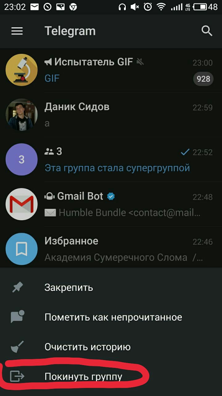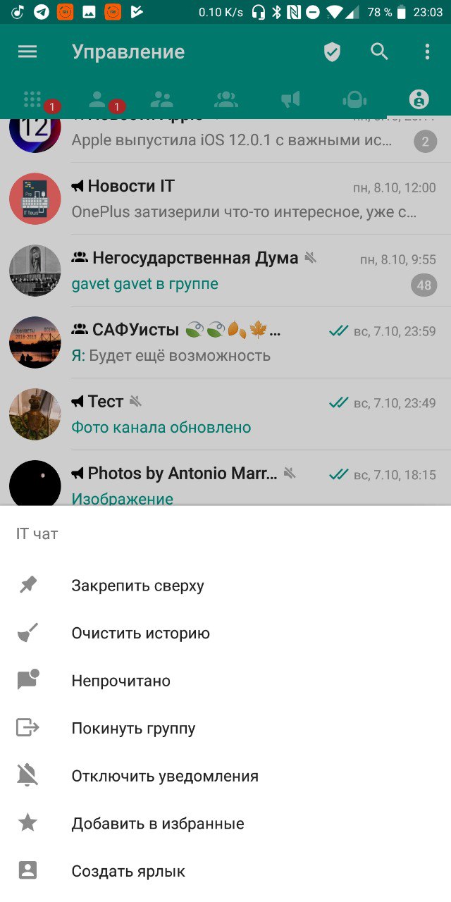 В общем списке Свайпни или долгий тап нажми на нужном чате