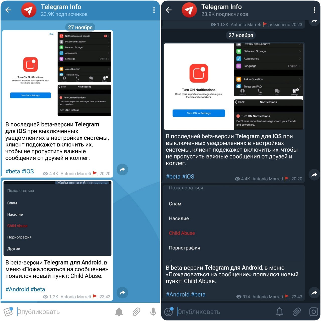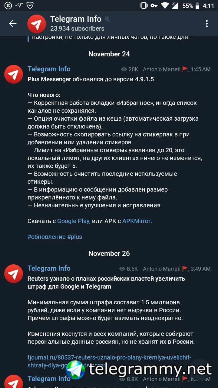 В beta-версии Telegram для Android были заметно увеличены пузыри сообщений на каналах.