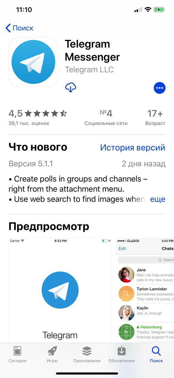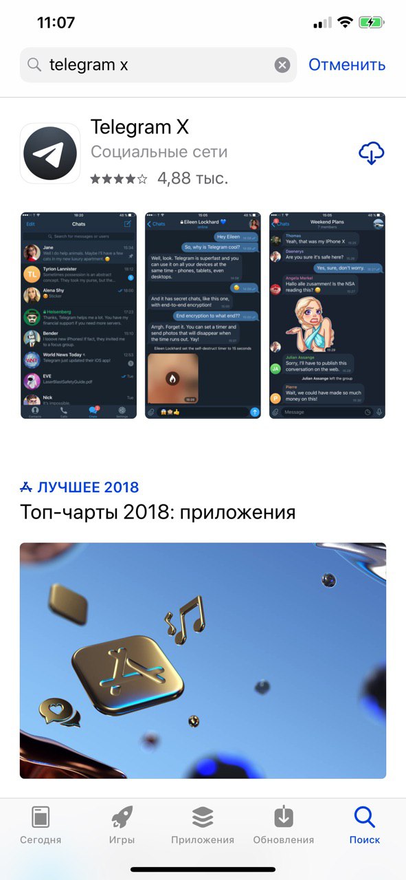 На iOS уже нет телеграм х