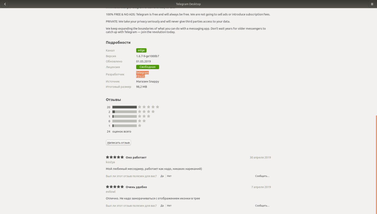 https://snapcraft.io/telegram-desktop