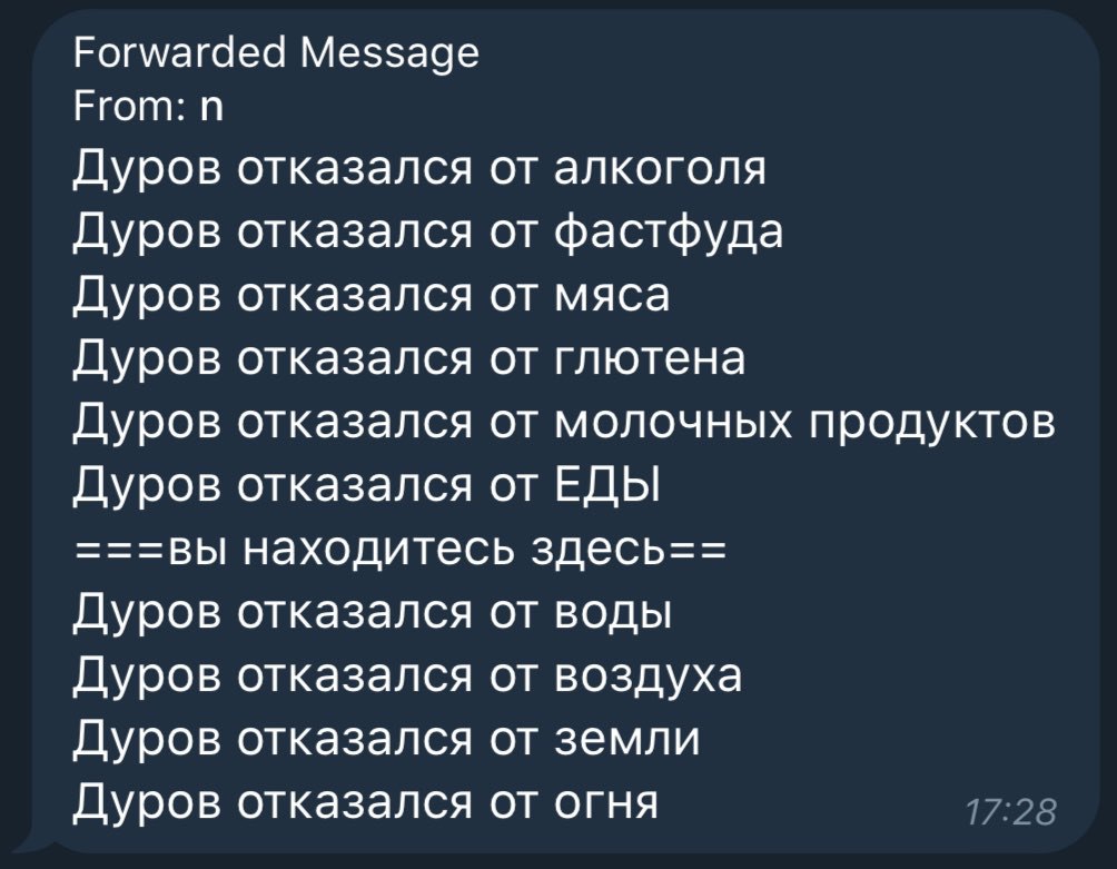 Буду голодать что бы новые идеи пришли как я могу улучшить телеграм.