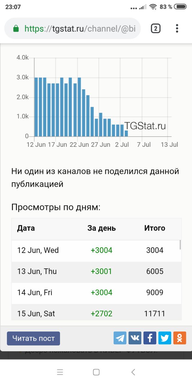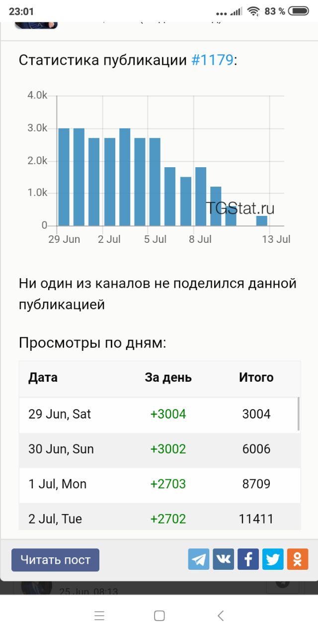 Хорошо, вот другой пост с этого канала в тгстат, опять посмотрите на почти круглые цифры