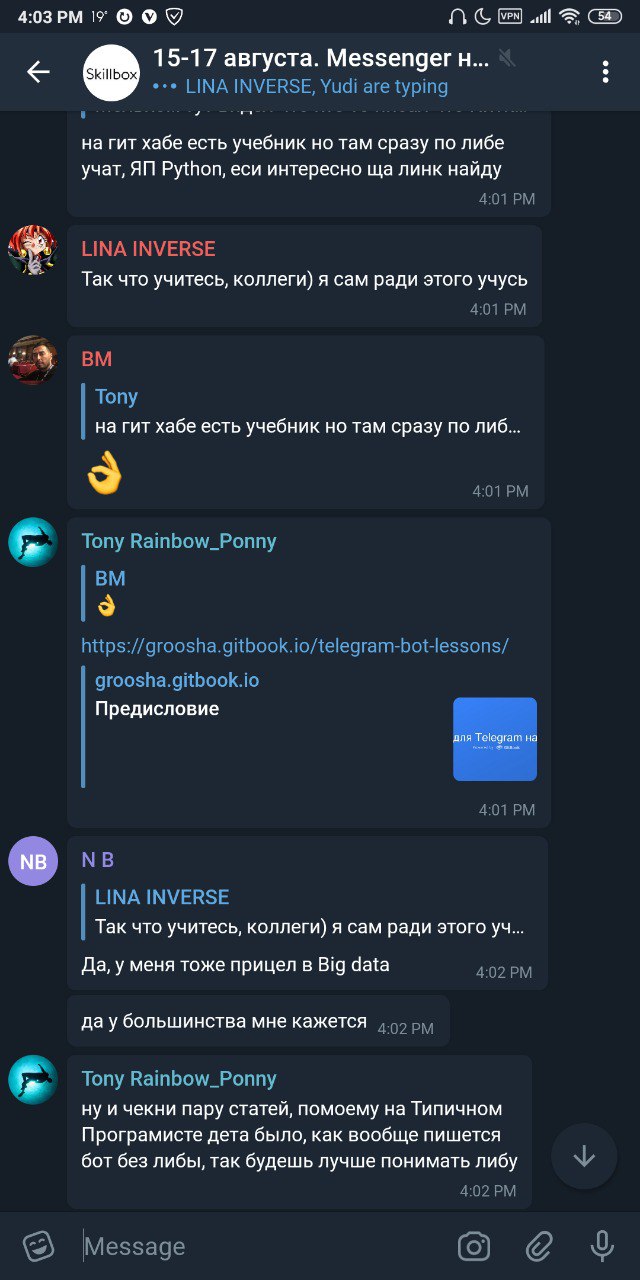 Пытался по его книге написать бота, но почему-то не пошло) На телетоне как-то сразу зашло