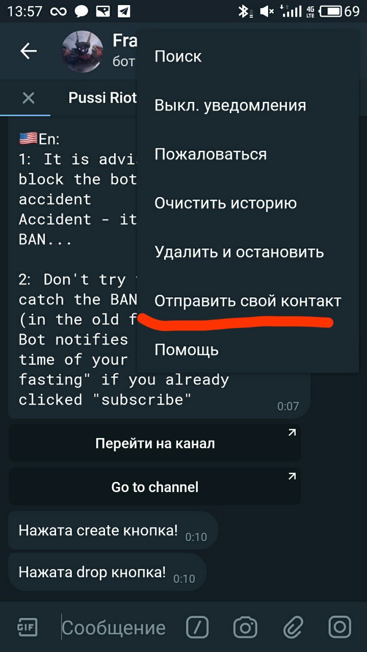 привет друзья. а как на айфоне отправить свой контакт боту?