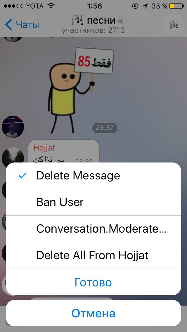 Если нажать на этот стикер то отправится кот