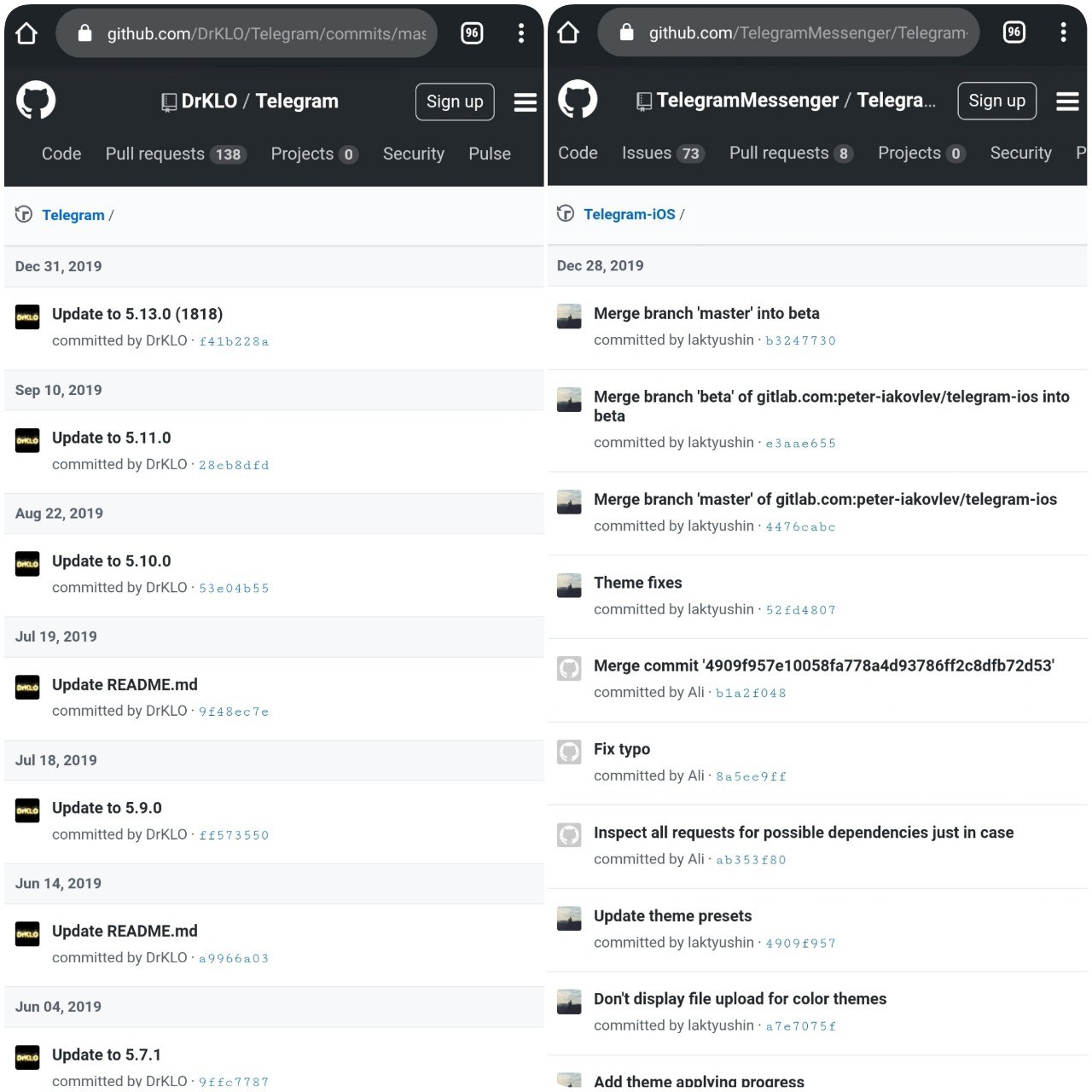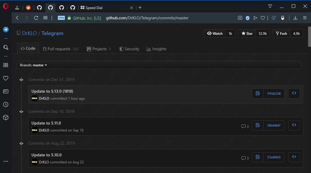 На GitHub был обновлен исходный код мобильных клиентов Telegram для Android и iOS до актуальной версии 5.13