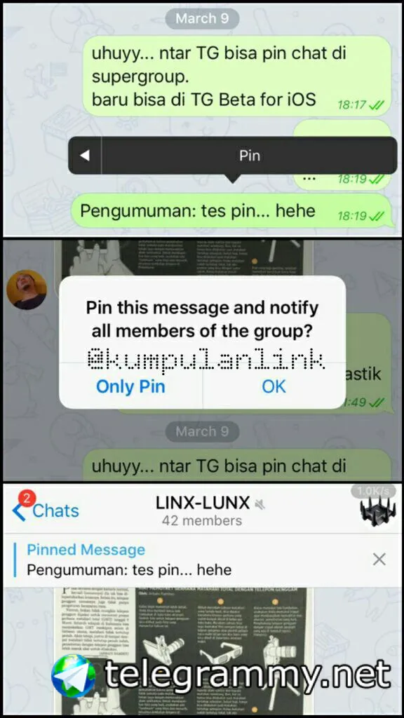 Telegram rumour: Pin message on supergroups is coming.