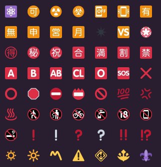 🈶🈚️🈸🈺🈷🉐㊙️🈴㊗️🈵🈹🈲🈳