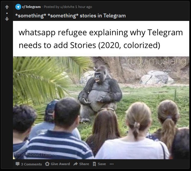 just imagine... ... how many users telegram would have gained the last month, if it already had decent group video calls via reddit https://www.reddit.com/r/Telegram/comments/g4700o/just_imagine/?utm_source=ifttt