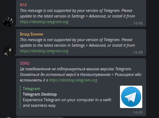Це повідомлення не підтримується вашою версією Telegram. Оновіться до останньої версії в Налаштуваннях > Розширені або встановіть її з https://desktop.telegram.org