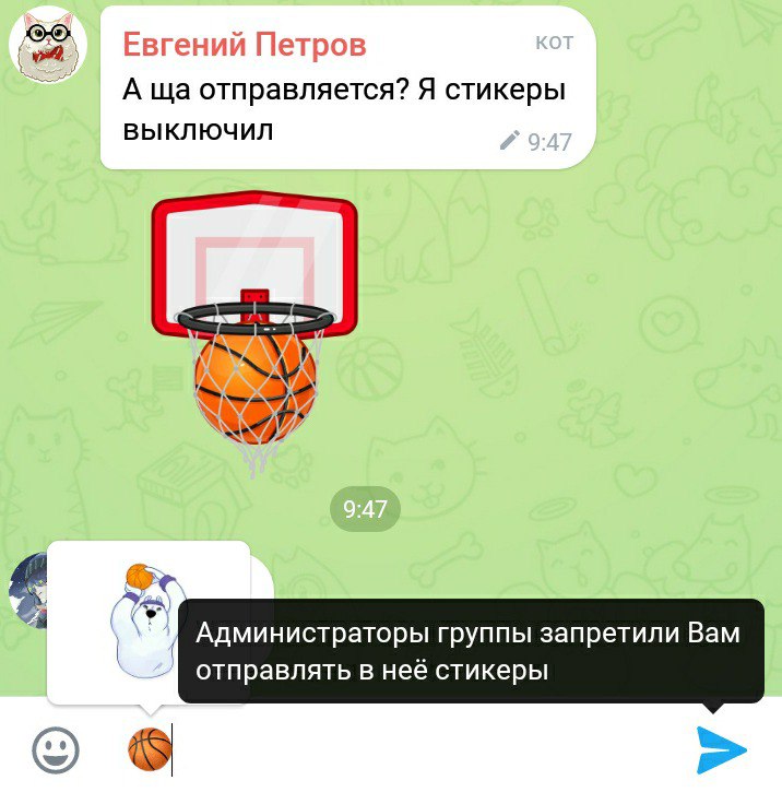 А ща отправляется? Я стикеры выключил