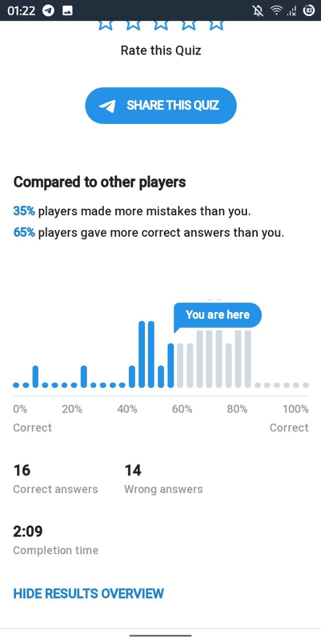 У меня есть тест на 20 вопросов, но сомневаюсь, что его многие пройдут