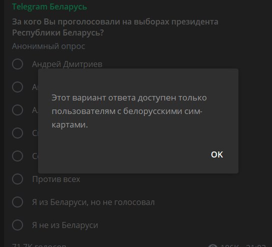 Официальный канал в Telegram проводит опрос, за кого бы проголосовали жители Беларуси на президентских выборах.