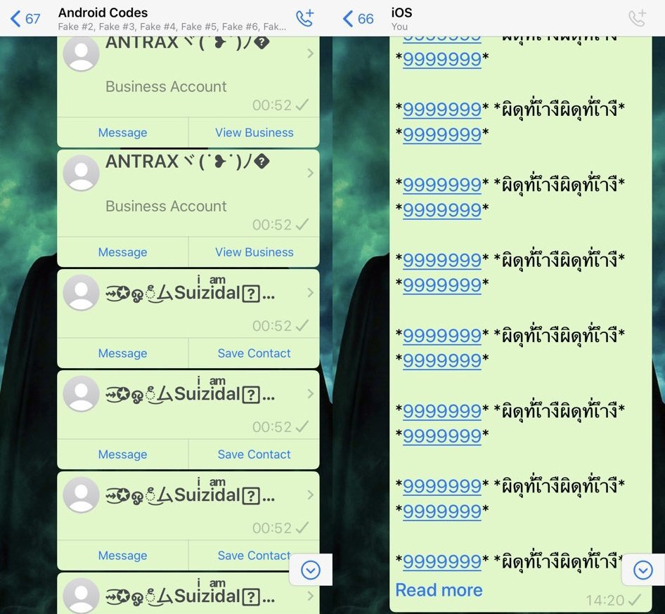 💣 Появился набор символов, который убивает WhatsApp