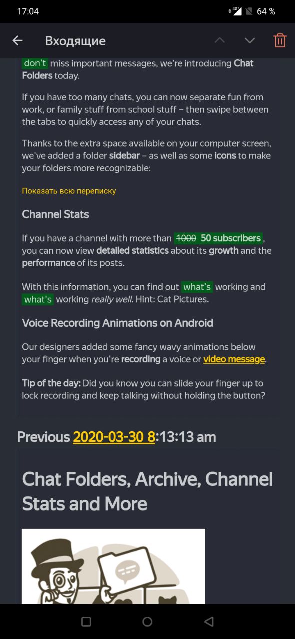 На очередной обложке, подготовленной к крупному обновлению Telegram, мы обнаружили… выброшенное в мусорку мнение дизайнера Артемия Лебедева.