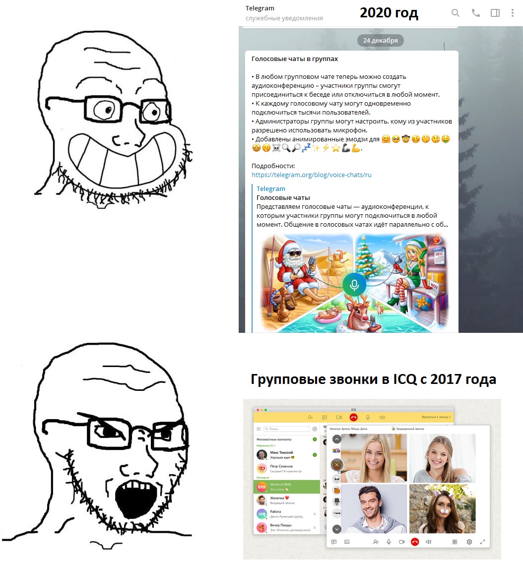 От левого чувака, который пытался таким образом сподвигнуть Telegram на новые фичи