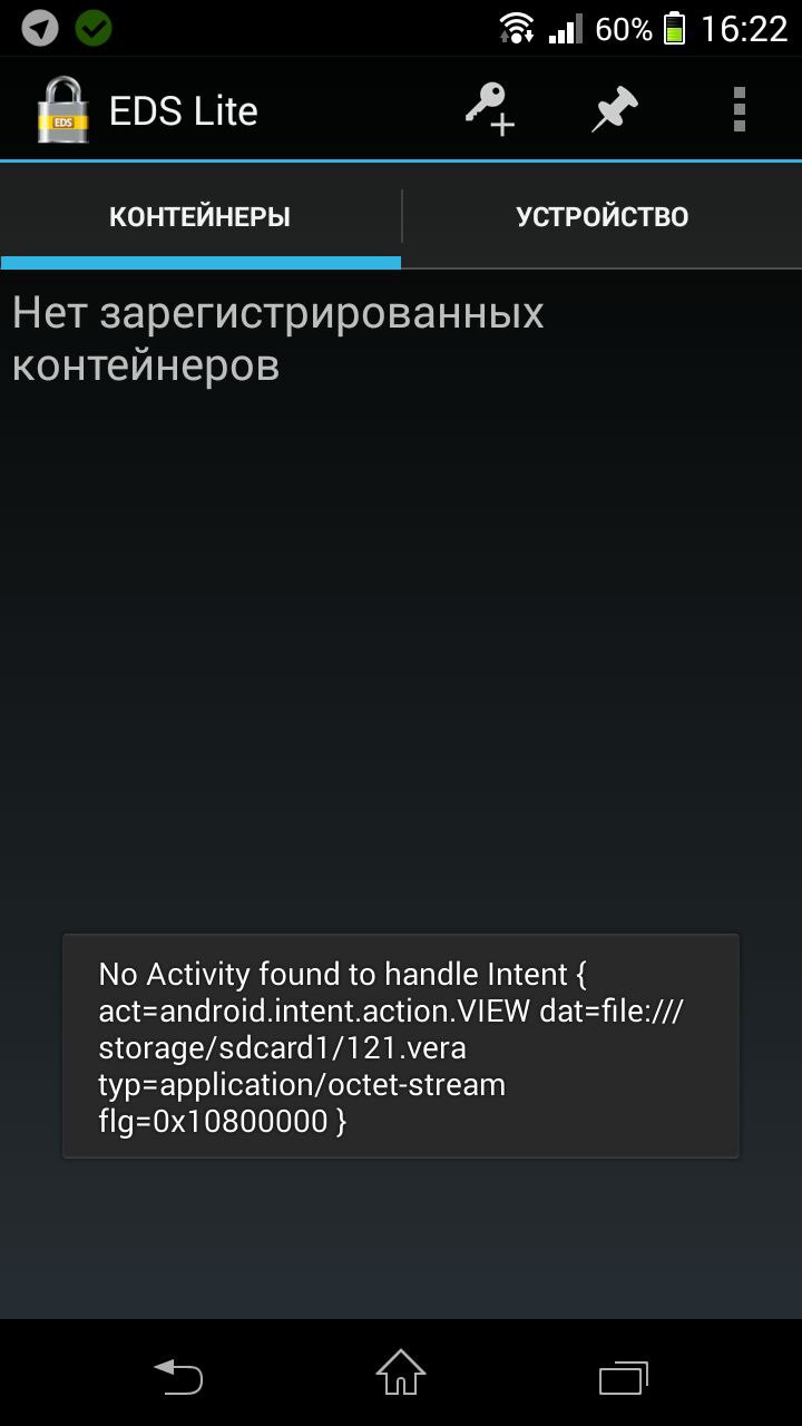 скопировать контейнер в память телефона и попробовать открыть его