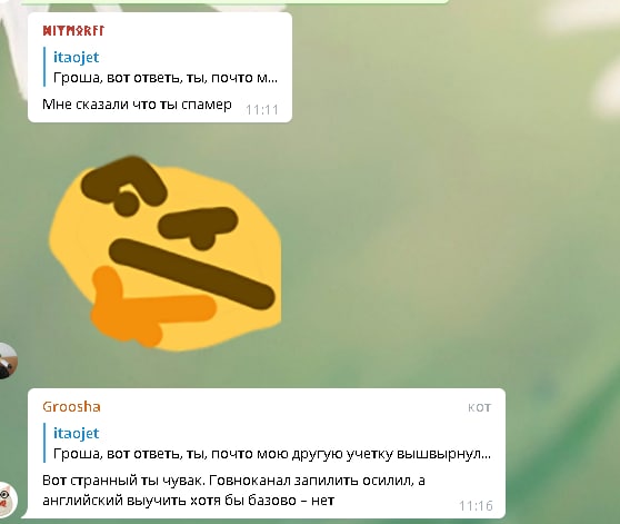 Гроша, вот ответь, ты, почто мою другую учетку вышвырнул из чята?
