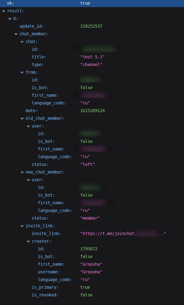 • Added updates about member status changes in chats: my_chat_member and chat_member