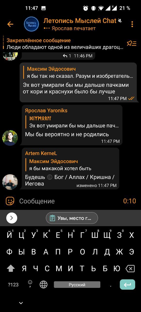 Я не помню, кто сидел затирал про теорию заговора Дурова и роскомпараши