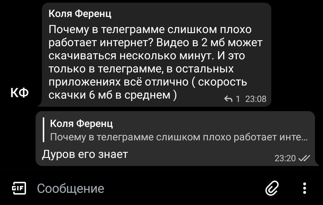 Почему в телеграмме слишком плохо работает интернет? Видео в 2 мб может скачиваться несколько минут. И это только в телеграмме, в остальных приложениях всё отлично ( скорость скачки 6 мб в среднем )