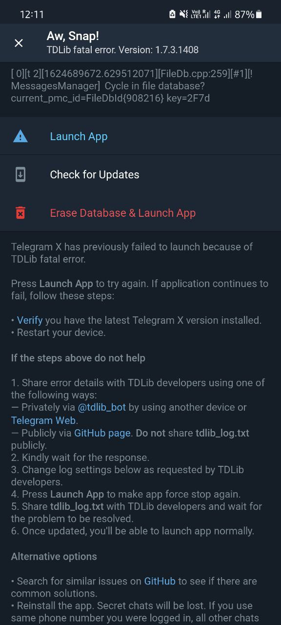 Telegramx keeps on crashing