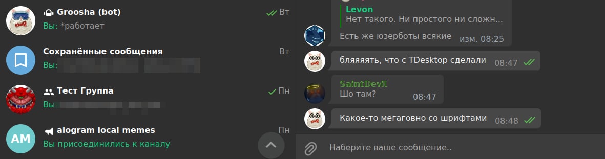 в итоге телега меняет шрифт на опен санс, но не его стиль