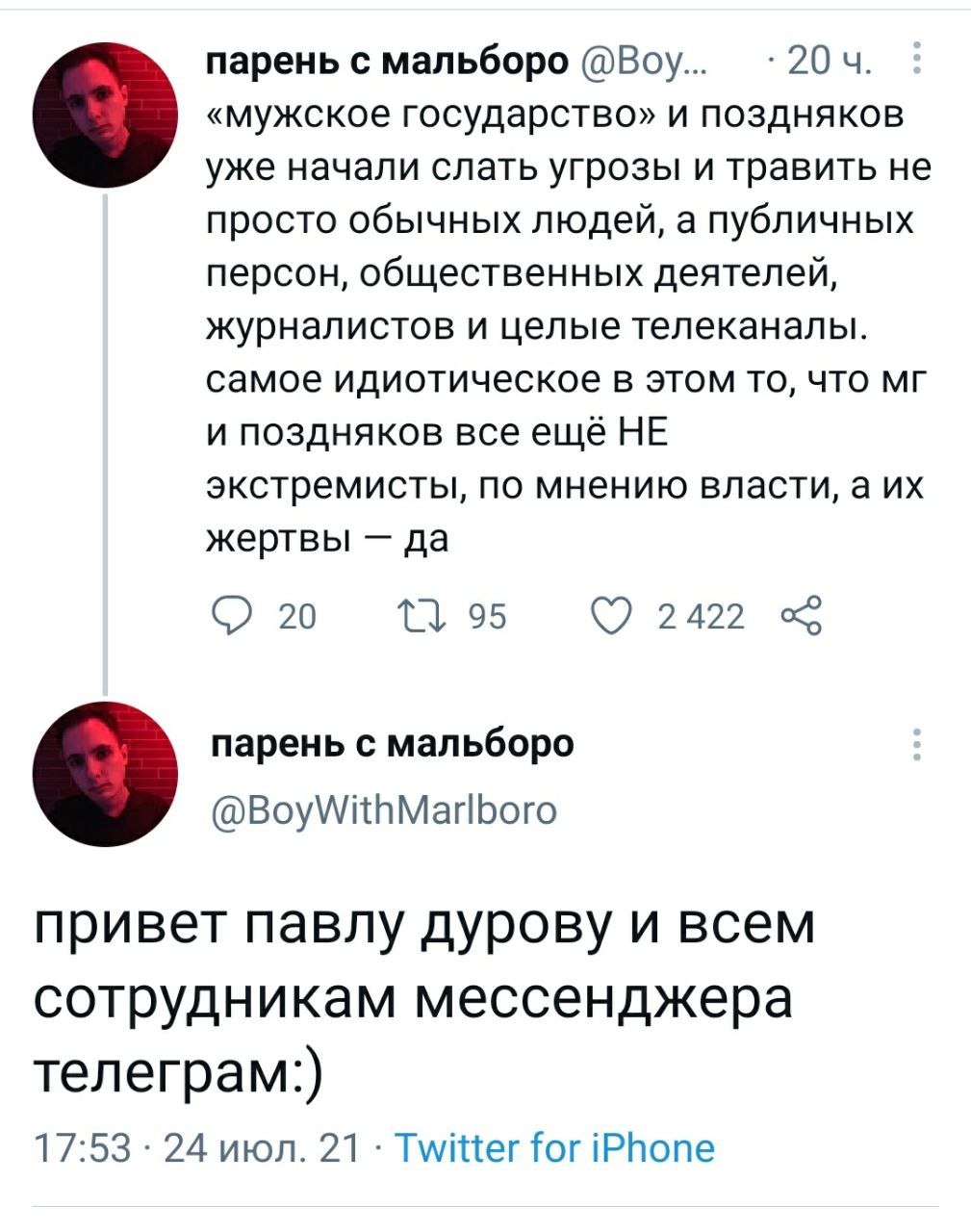 В голове Дурова есть, поэтому его не волнует, что телеграм становится трибуной и для таких людей