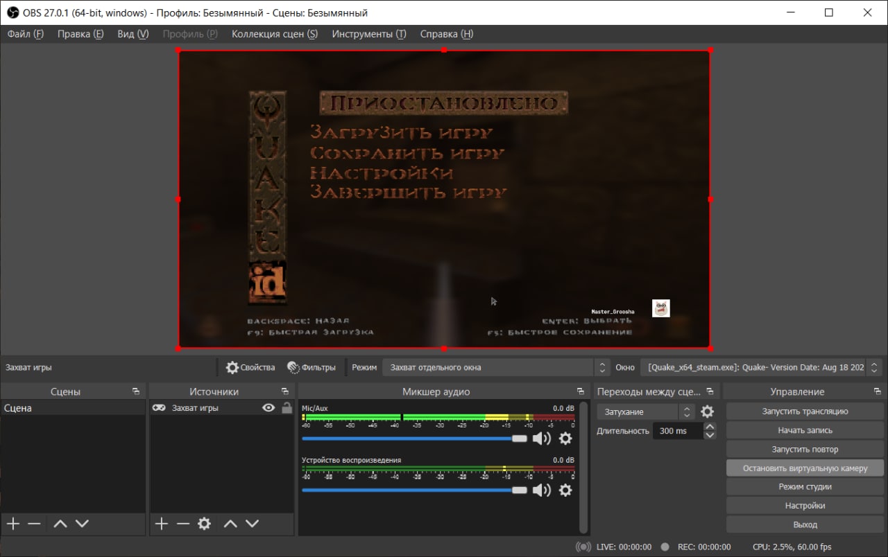 Ну что за говно. Пытаюсь стримить в группу Quake первый из Steam, так трансляция зависает, когда я на экран с квейком переключаюсь