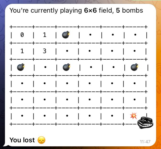 | 💣 | • | • | • | • | • | • |