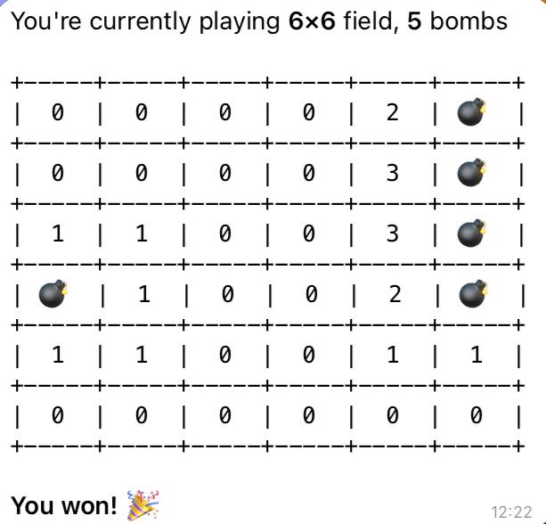 | 💣 | 3 | 💣 | 1 | 0 |