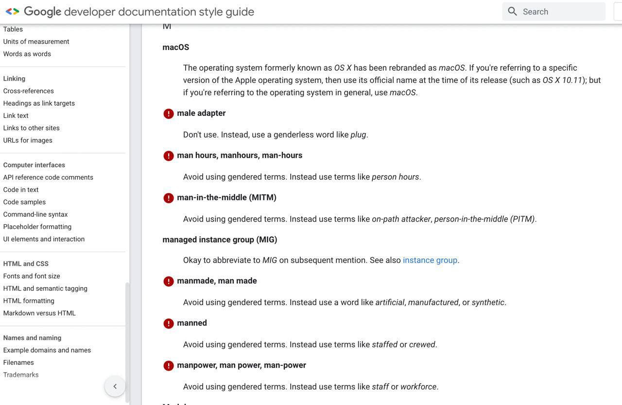 Начинай день с гендерно-нейтральной документации, а то белые маскулины намизогинили (плевать что бы не значило это вымышленное слово), а клоунам по квотам надо оскорбиться по расписанию.