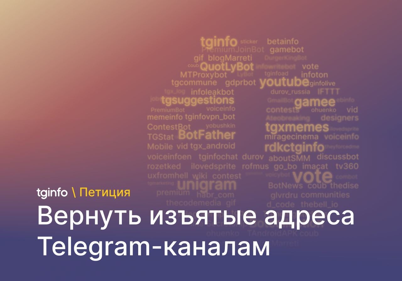 Петиция: вернуть изъятые адреса Telegram-каналам