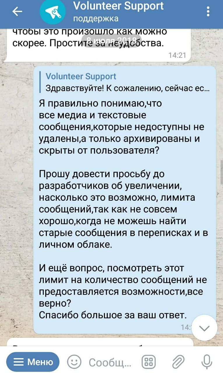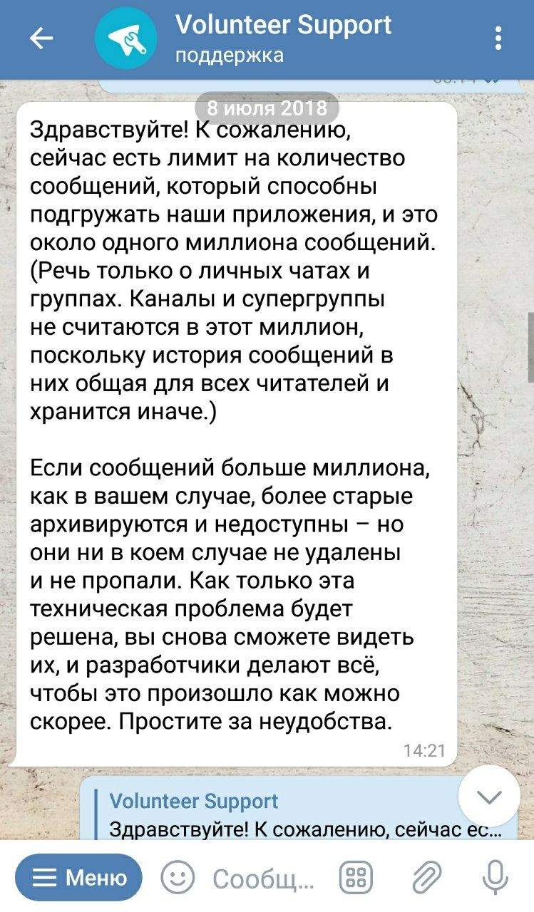 О лимите на количество сообщений в Телеграм суммарно от групп, ботов и личных чатов.