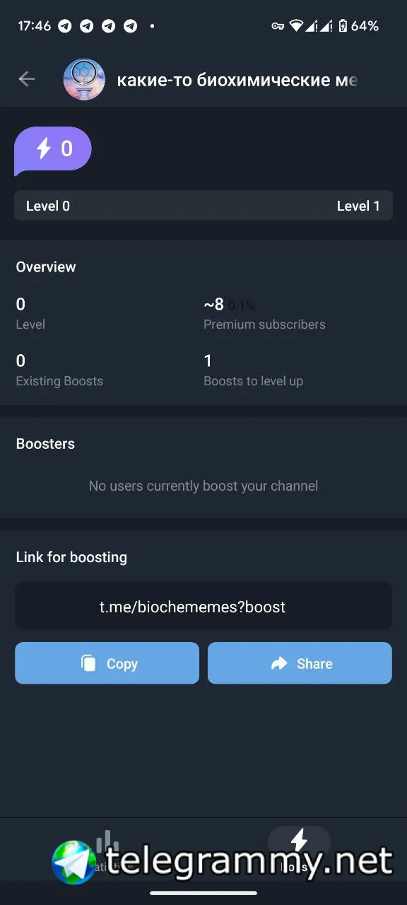 Причём если у тебя канал мелкий, то ХУЙ ты второй раз попадёшь в это окно со статистикой бустов))))