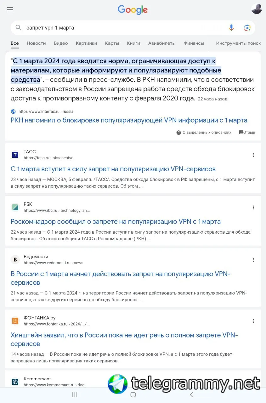 Если вдруг тебя заблокировали в гугле, напомню: Роскомнадзор имеет право блокировать vpn уже несколько лет. Никакого 01.03.2024 ему для этого не нужно