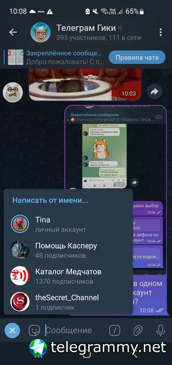 Почему я не могу в одном чатп поменять аккаунт канала на личный?