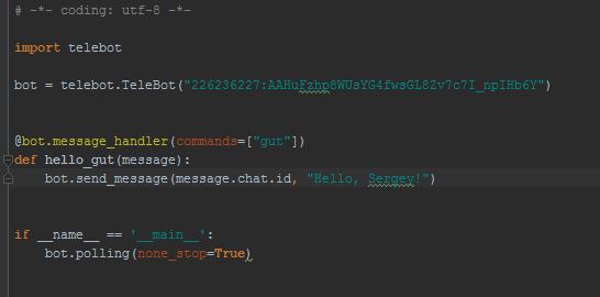 Done! Congratulations on your new bot. You will find it at telegram.me/test_gut_bot. You can now add a description, about section and profile picture for your bot, see /help for a list of commands. By the way, when you've finished creating your cool bot, ping our Bot Support if you want a better username for it. Just make sure the bot is fully operational before you do this.