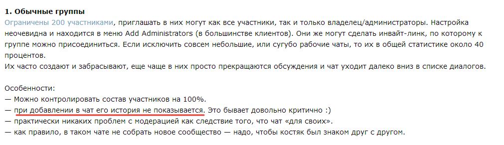 @teodorix И, кстати, можно добавить, что при добавлении человека в обычную группу можно выбрать, сколько последних сообщений он увидит.