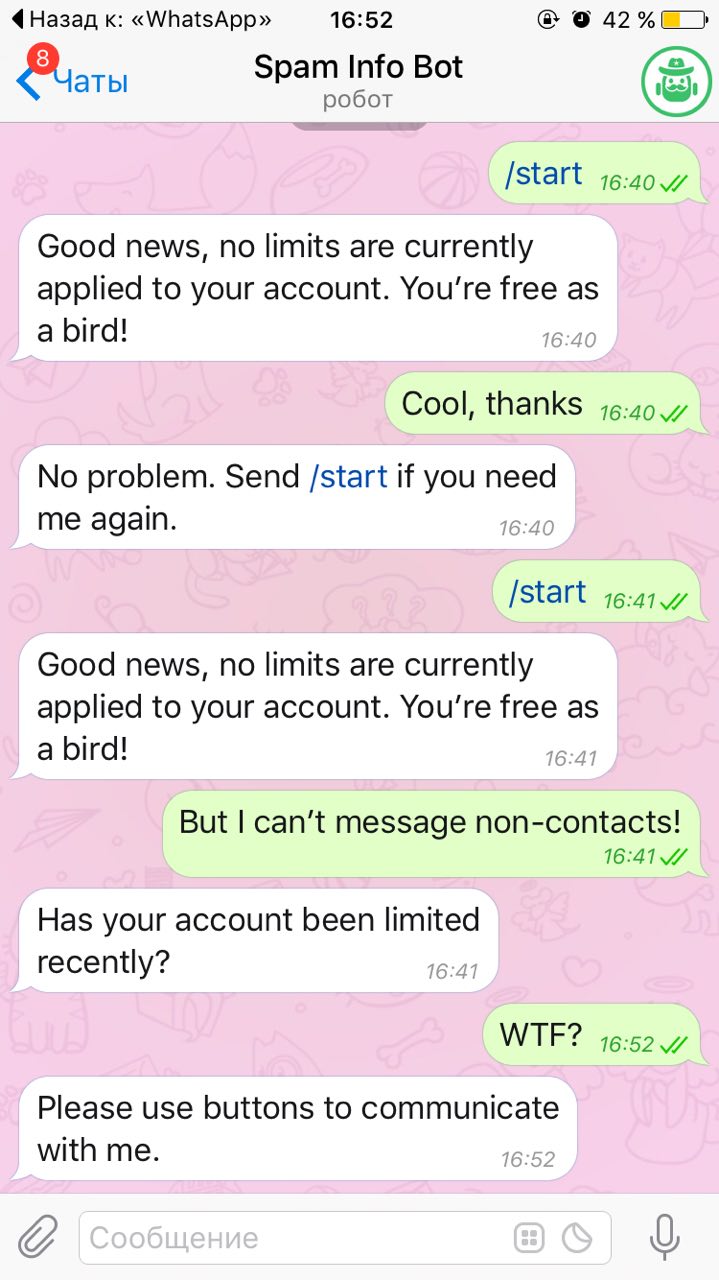 что ответил этот бот @SpamBot ?