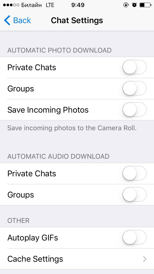 Настройки - Настройки кэша